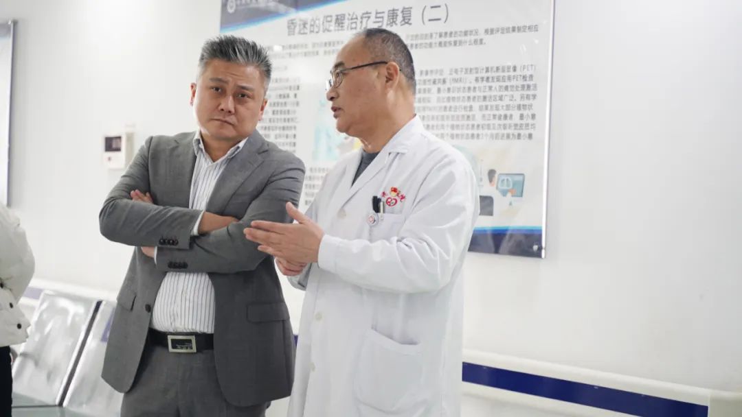 此次交流中,郭廣茂總裁一行首先對我院學(xué)術(shù)報告廳、神經(jīng)康復(fù)病區(qū)、重癥康復(fù)病區(qū)、智能康復(fù)大廳等區(qū)域進(jìn)行了全面參觀,并就醫(yī)院整體運(yùn)營狀況、康復(fù)醫(yī)學(xué)領(lǐng)域建設(shè)以及智慧康復(fù)大廳的布局規(guī)劃等方面進(jìn)行了深入交流。